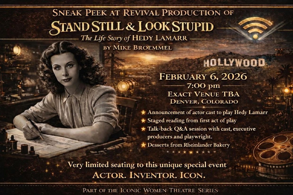 Join us for an exclusive sneak peek at the revival production of Stand Still & Look Stupid: The Life Story of Hedy Lamarr by playwright Mike Broemmel, returning to the stage in 2026.